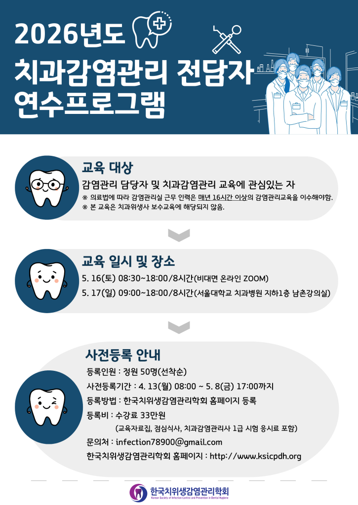 2026년 치과감염관리 전담자 연수프로그램 등록 안내